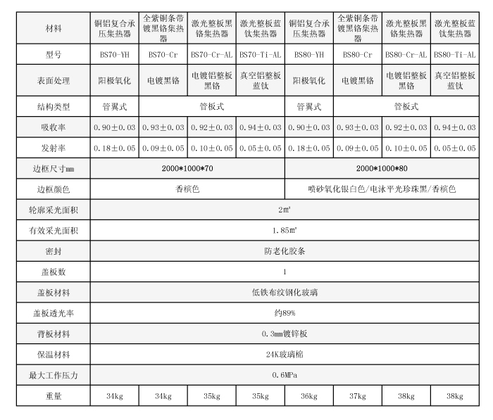 邊框:邊框采用鋁合金1.2mm氧化處理后,又一次烤漆處理,增加了使用年限及美觀性。背板:集熱器背板采用國際先進的一體滾壓技術,確保產品具有更好的機械性能及保溫效果。