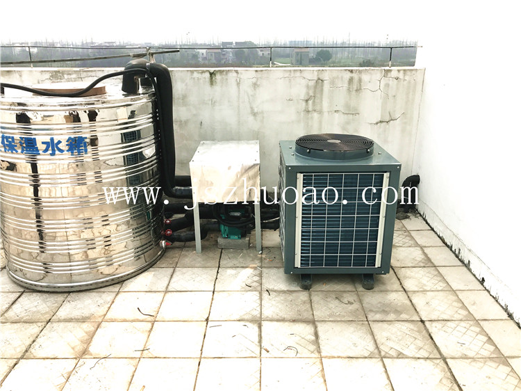 丹陽皇塘派出所熱水工程,為警員浴室淋浴用水,配置了一臺3匹主機和一個不銹鋼2噸保溫水箱。